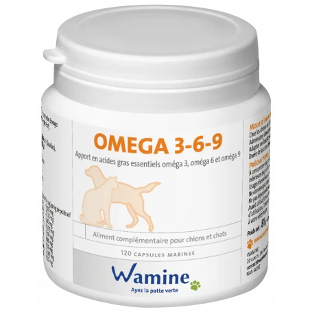 <div class="product-details" id="product-details" data-product="{"id_shop_default":"1","id_manufacturer":"71","id_supplier":"94","reference":"3700593400245","is_virtual":"0","delivery_in_stock":"","delivery_out_stock":"","id_category_default":"355","on_sale":"0","online_only":"0","ecotax":0,"minimal_quantity":"1","low_stock_threshold":null,"low_stock_alert":"0","price":"22,08u00a0u20ac","unity":"comprimu00e9","unit_price_ratio":"0.000000","additional_shipping_cost":"0.000000","customizable":"0","text_fields":"0","uploadable_files":"0","redirect_type":"404","id_type_redirected":"0","available_for_order":"1","available_date":null,"show_condition":"0","condition":"new","show_price":"1","indexed":"1","visibility":"both","cache_default_attribute":"141387","advanced_stock_management":"0","date_add":"2018-01-16 11:47:33","date_upd":"2023-07-15 04:12:57","pack_stock_type":"3","meta_description":"Supplu00e9ment nutritionnel, pour chiens et chats, u00e0 base d'huiles de capelan et de bourrache.Apport en acides gras essentiels omu00e9ga 3, omu00e9ga 6 et omu00e9ga 9.","meta_keywords":"","meta_title":"Wamine Omega 369","link_rewrite":"wamine-omega-369","name":"Wamine Omega 369","description":"